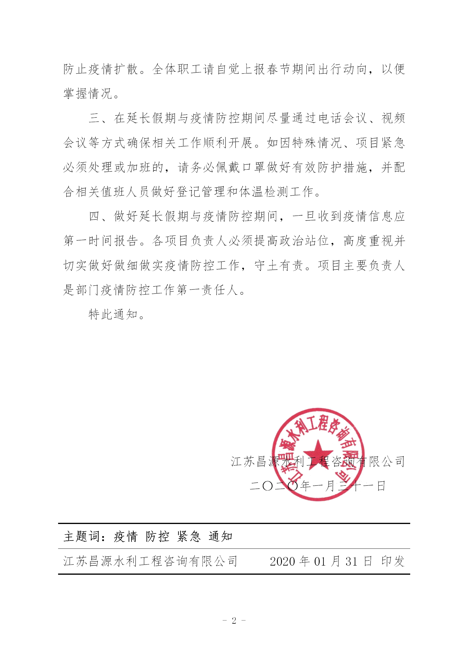 關(guān)于做好疫情防控工作的緊急通知(江蘇昌源﹝2020﹞1號(hào))