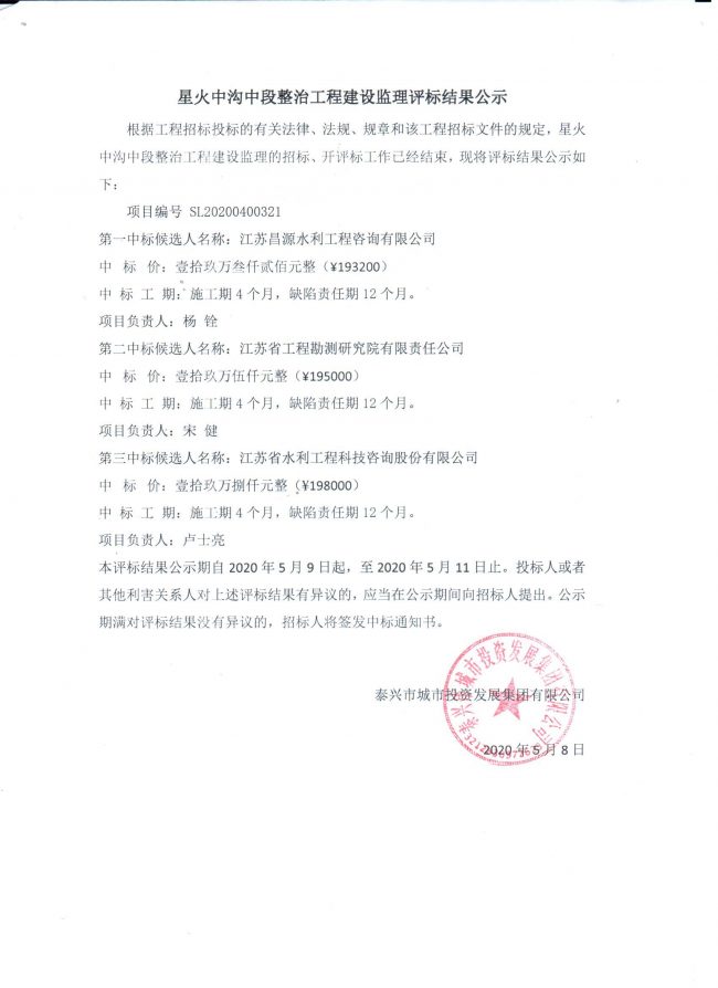 公司中標泰興市2019年農村活水工程(配套建筑物)監(jiān)理01標