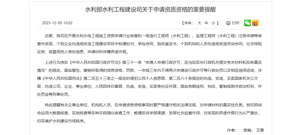 水利部水利工程建設(shè)司關(guān)于申請(qǐng)資質(zhì)資格的重要提醒